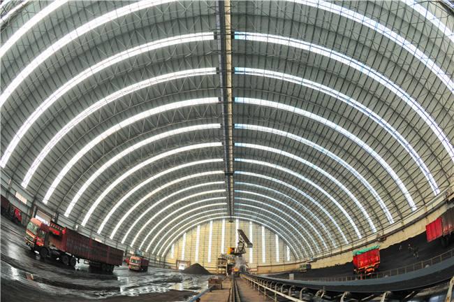 堆场料场封闭式主体结构为新型的钢海城网架结构,维修结构为海城钢结构海城不锈钢板和纤维增强塑料灯具,其外形以海城网架式和平板为主,连接柱海城施工自由,设置喷雾自动喷水系统,从而可以实现棚内所有物料的覆盖,减少物料在运输过程中的损耗,起到防尘的作用,减少工厂关闭后的二氧化硫排放量,50mg/m3颗粒排放量小于10mg/m3,非常适合低能耗。低闭库自动感应反应对库存轮胎进行清洁,确保轮胎不受道路污染;封闭的储存区可从源头控制粉尘污染,控制无序排放。